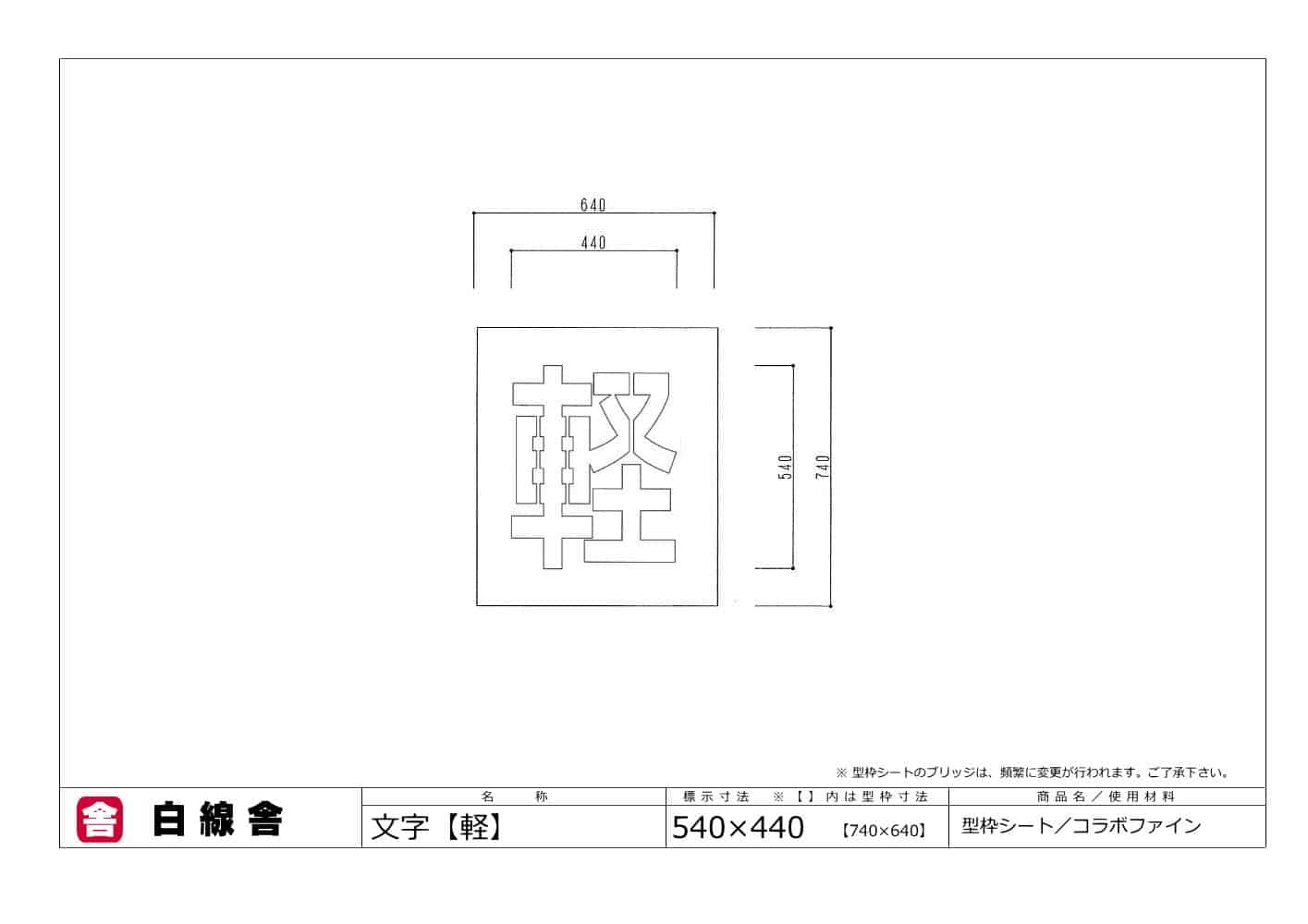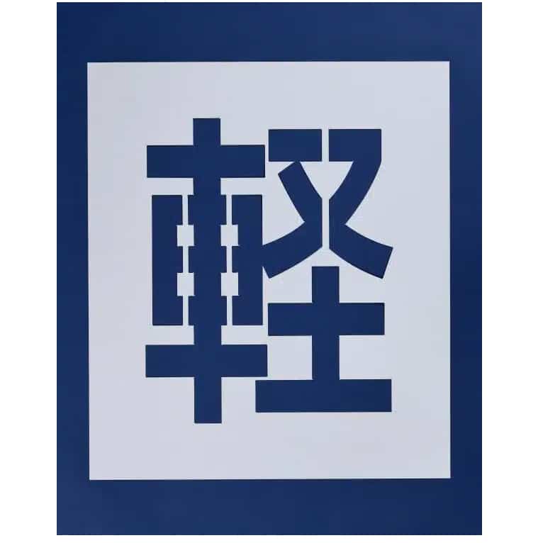 縦54cm・横44cmの駐車場の文字の型枠(74cm×64cm)です。アスファルトやコンクリートの駐車場に、ペンキを使って簡単に軽の文字が書けるステンシルです。駐車場の区画線ライン工事業者が使用する段ボール製の型枠で、路面標示工事に適したテンプレートです。