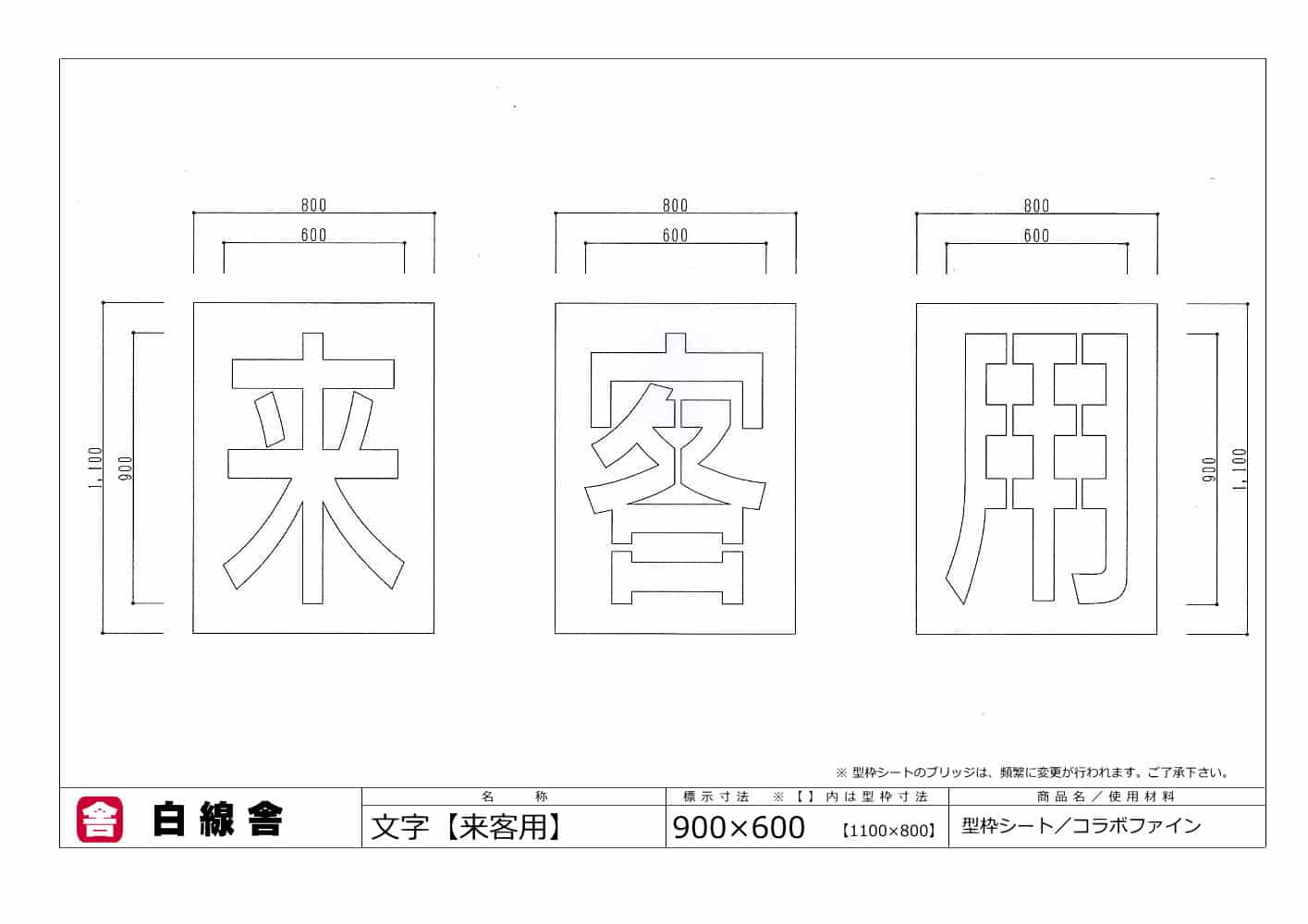 駐車場文字「来客用」h900のペンキ用型枠のサイズ:寸法図