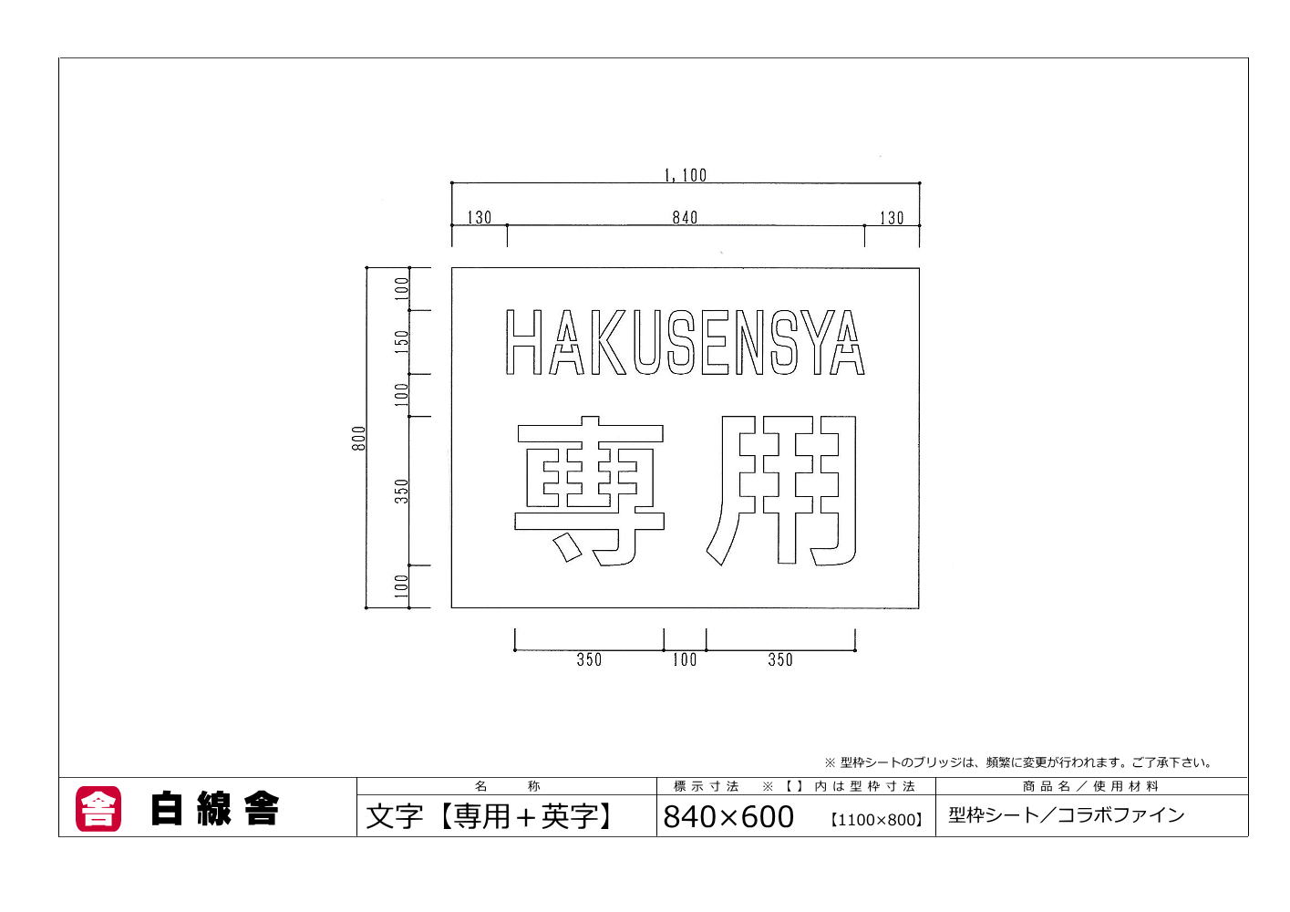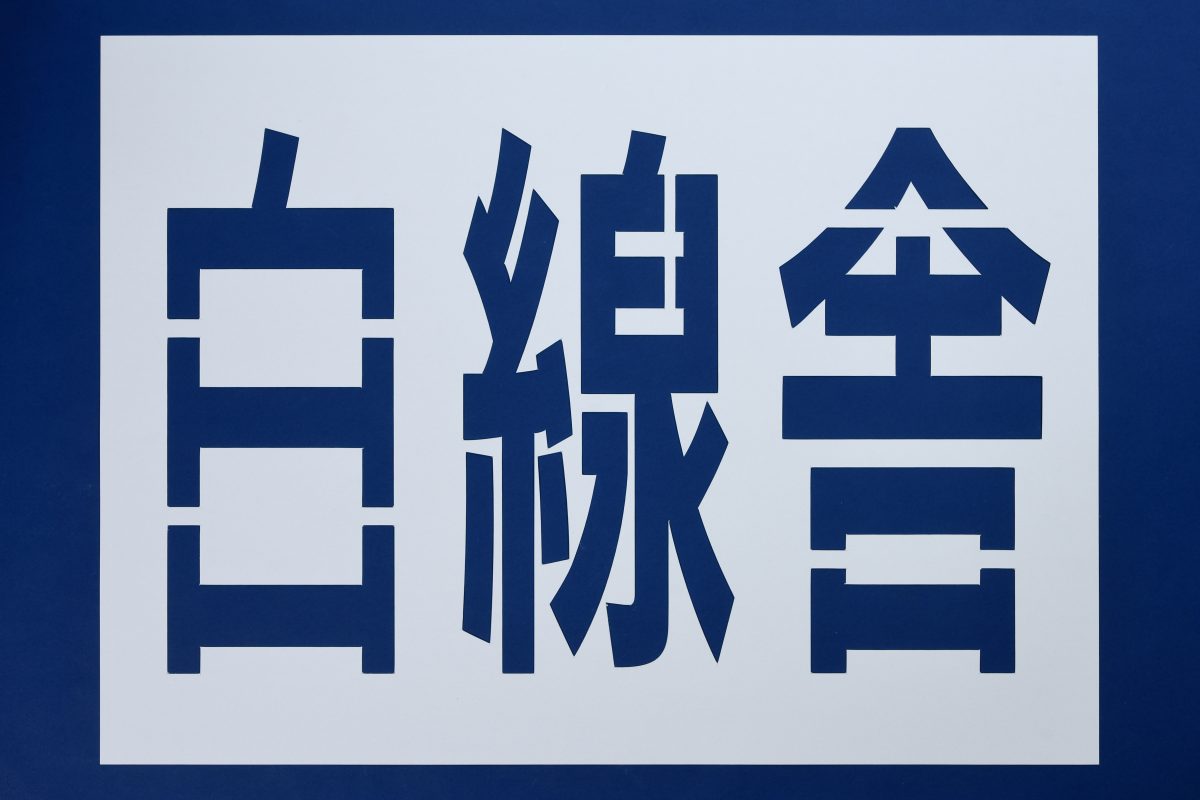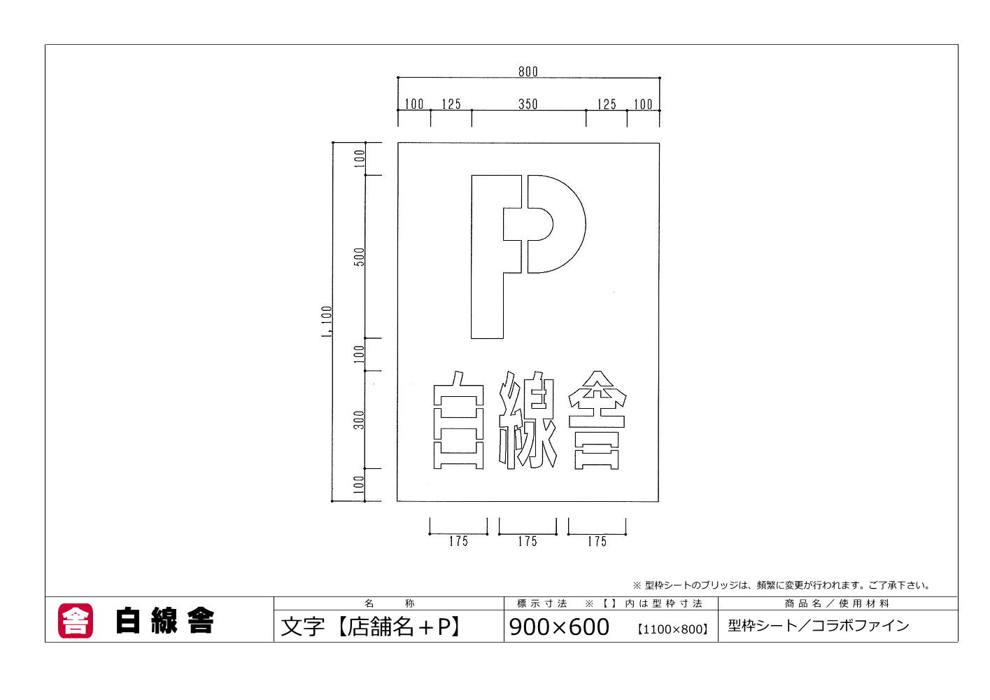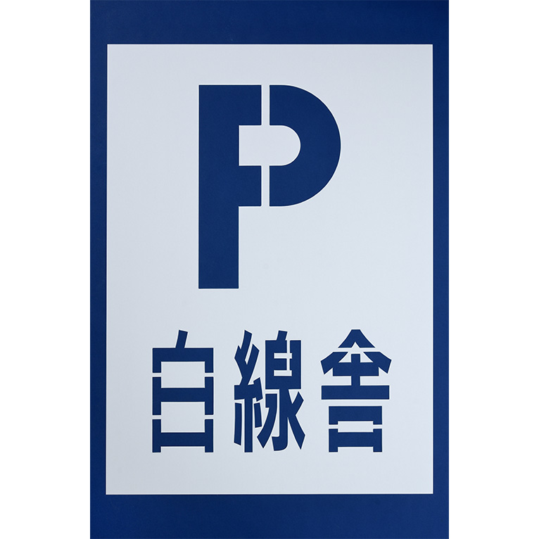駐車場の文字の型枠(110cm×80cm)です。アスファルトやコンクリートの駐車場に、ペンキを使って簡単に名前・店舗名・建物名・会社名の文字が書けるステンシルです。駐車場の区画線ライン工事業者が使用する段ボール製の型枠で、路面標示工事に適したテンプレートです。